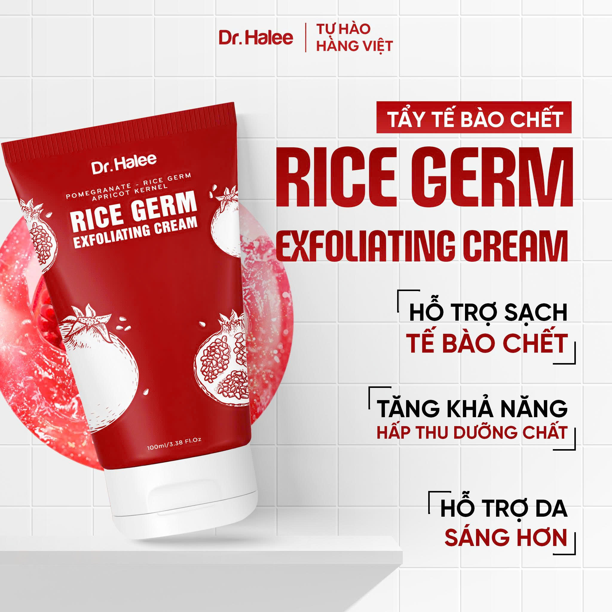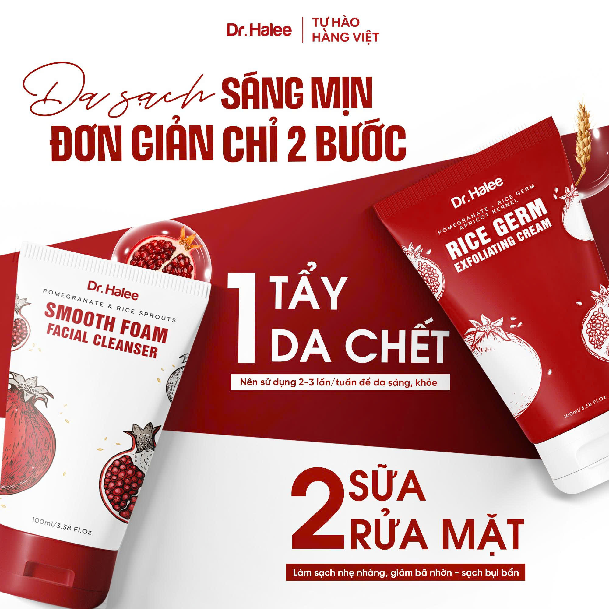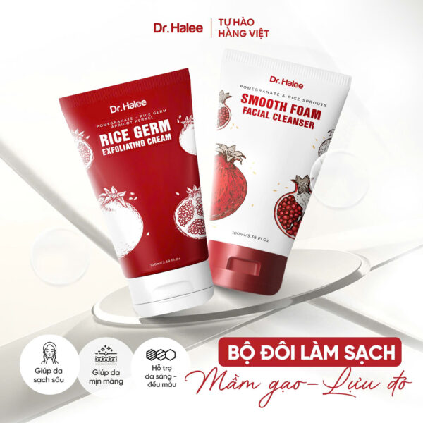 Bộ đôi Sạch sâu Hoàn hảo Lựu đỏ – Mầm gạo của Dr.Halee ngoài việc làm sạch bụi bẩn, bã nhờn và các tế bào lớp sừng khác thì còn giúp da được dưỡng ẩm và sáng khoẻ hơn nhờ những dưỡng chất được cung cấp.